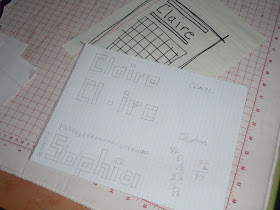 Many of the quilts I make are designed in my head.  I go right from the concept in my head to fabric and then the design wall.  On occasion I make a quick sketch.  Here is my sketch for the I Spy quilts.  I spent some time last evening playing around with the lettering.  I need to go over to Tonya Ricucci's blog Lazy Gal Quilting because I need a visual on making the letters a  and r.