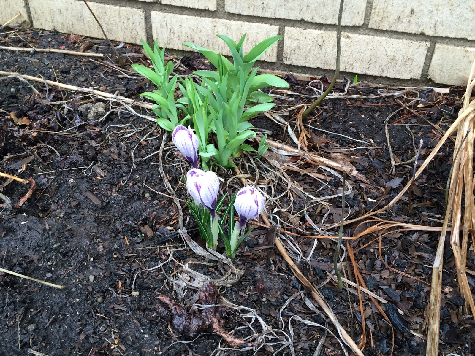 I noticed that a few crocus that were transplanted by the squirrels had come up. The deer have also missed eating these. It was nice to see them. I had brought them with me when I had moved and thought they were so pretty with their purple stripes.