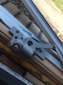 Before I did anything I needed to change one of the window crank mechanisms.  Before the ten year warranty ran out I called the manufacturer and got a replacement.  I have had the replacement for at least 7 years!  Time to fix it!  Here the old one and the new one installed.  Fear had kept me from tackling this job which turned out to be very easy to do.