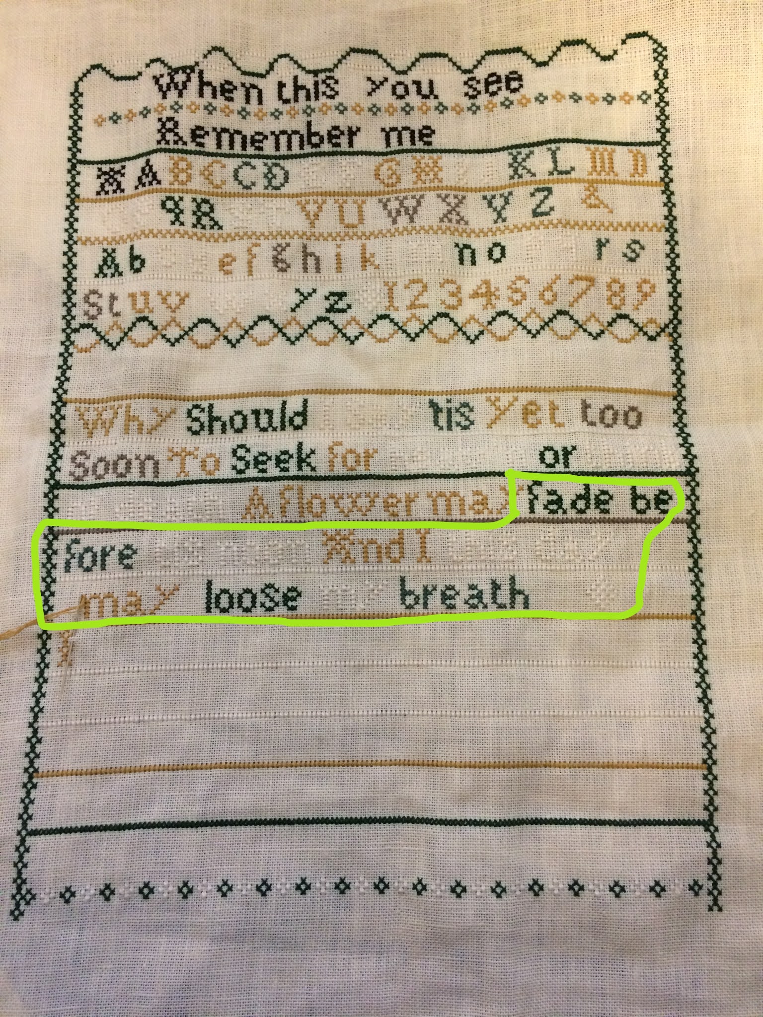 Here is the progress on the sampler. I circled the area in green that I have gotten done since I posted this last.